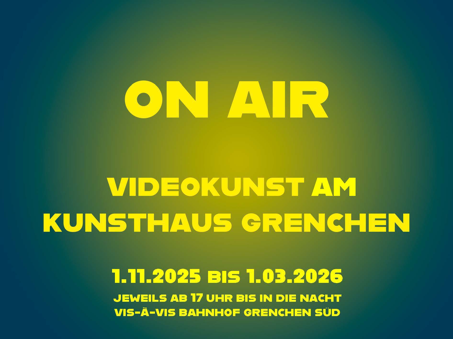 Der vorerst als Testlauf lancierte Kunst-Wettbewerb ON AIR soll ab 2025 vom Kunsthaus Grenchen aus Licht und Bewegung in die herbstliche und winterliche Umgebung hinaustragen. Während den dunkleren Monaten, jeweils vom 1. November bis 1. März, sollen im Foyer projizierte künstlerische Videobeiträge durch die Glasfenster nach aussen scheinen – insbesondere abends, also während einem geschlossenen Betrieb.